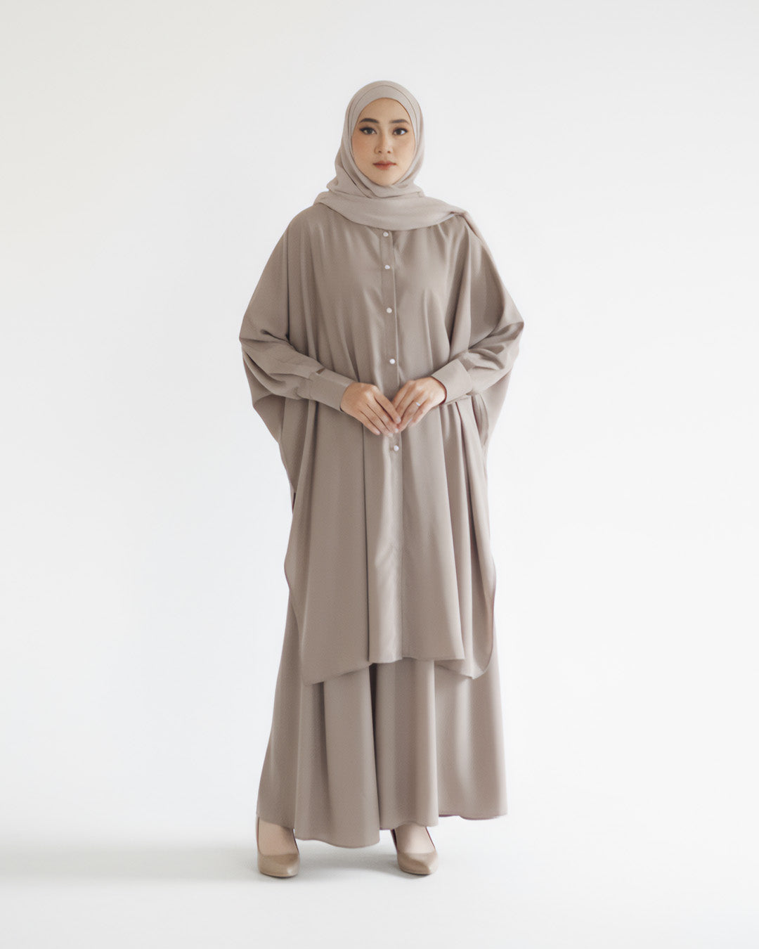 Saffiyah di rancang dengan desain yang mengutamakan kenyamanan dan kesopanan, tanpa meninggalkan sentuhan modesty. Terbuat dari bahan yang flowy, ringan, lembut, dan lembut di kulit, menjadikannya pilihan tepat untuk umroh, haji, safar, maupun aktivitas sehari-hari. Potongan batwing-nya dirancang untuk semua bentuk tubuh, dari kurus hingga berisi yang dapat memberikanlook tetap ramping, effortless, dan anggun. Serta, terdapat kancing di belahan depan untuk mempermudah pemakian dan sebagai nilai tambah estetika dalam berbusana.
