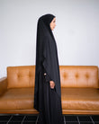 Didesain dengan panjang syar’i hingga area betis, memberikan tampilan yang tetap stylish, sopan, dan elegan. himar ini juga dapat digunakan sebagai niqab tanpa memerlukan tambahan aksesori, menjadikannya praktis untuk berbagai kebutuhan.