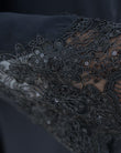 Peletakan renda tidak hanya dijahit lurus saja, tetapi mengikuti bentuk lekuk segitiga dari renda tsb, sehingga look dari bagian lengan seperti menyatu sempurna seperti tanpa sambungan. Cara jahit seperti ini dapat menambah kesan high class pada busana, karna menggunakan cara jahit tailored (bukan cara jahit garmen pada umumnya) sehingga hasilnya terlihat rapi, halus, dan memiliki nilai jual tinggi.