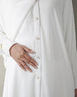 Saffiyah di rancang dengan desain yang mengutamakan kenyamanan dan kesopanan, tanpa meninggalkan sentuhan modesty. Terbuat dari bahan yang flowy, ringan, lembut, dan lembut di kulit, menjadikannya pilihan tepat untuk umroh, haji, safar, maupun aktivitas sehari-hari. Potongan batwing-nya dirancang untuk semua bentuk tubuh, dari kurus hingga berisi yang dapat memberikanlook tetap ramping, effortless, dan anggun. Serta, terdapat kancing di belahan depan untuk mempermudah pemakian dan sebagai nilai tambah estetika dalam berbusana.